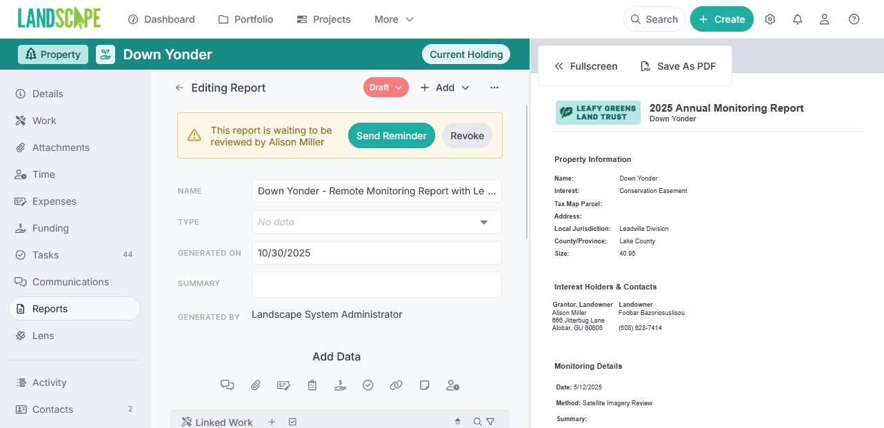 The Reviewer gets a notification in Landscape that a new report has been assigned to them. They may also get an email alert (based on their personal Settings).