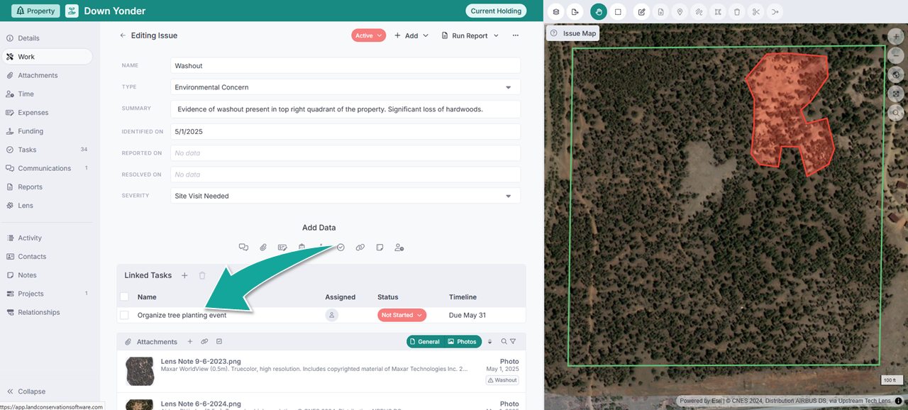 Note that many of these example tasks can be associated with work items like issues, site visits, or acquisition documents. The work item holds the final data (like the site visit points, issue description, etc.) while the task just tracks whether an action related to that item has been completed.
