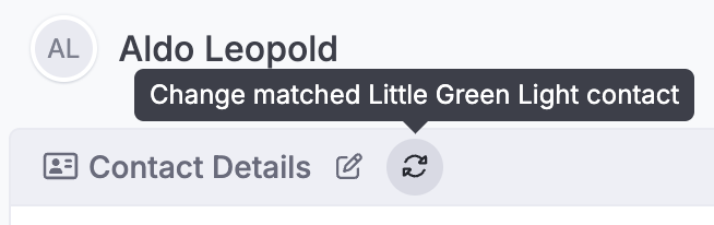 Match: Pressing the Match button on an LGL contact will link the Landscape contact to that LGL contact. If none of the matching LGL Contacts are the contact you want to match, but you know the contact exists in LGL, you can manually find the Id number of the contact in LGL and paste it into the Manually set matching LGL Id box and press the Match button.