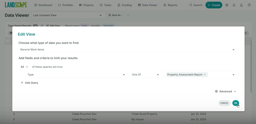 Forms are often used in Landscape to collect custom information about a property or work item. Occasionally those forms are designed as scorecards, management activity trackers, or for similar scenarios where summarizing the form's data points for your entire portfolio is desired or useful. This article describes how to use Data Viewer to achieve this goal.