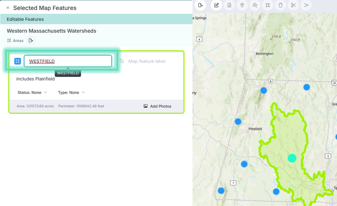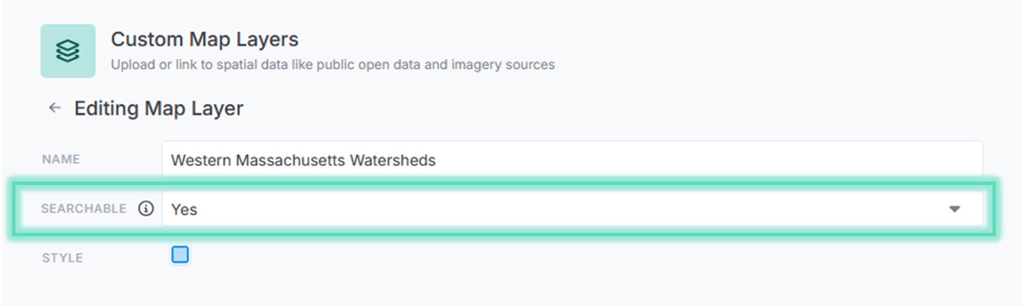 The 'Name' field in your Custom Layer's geography is what you'll use in Step 2 to filter records by this layer. Click on an object within the map to edit this field as necessary so it will be easily identifiable later: